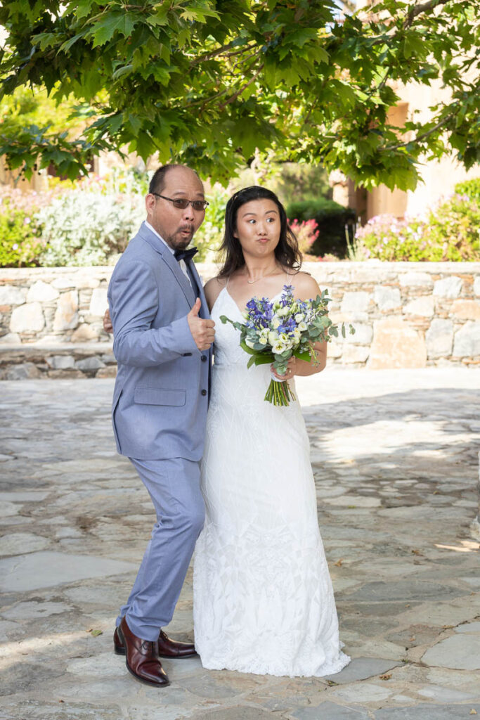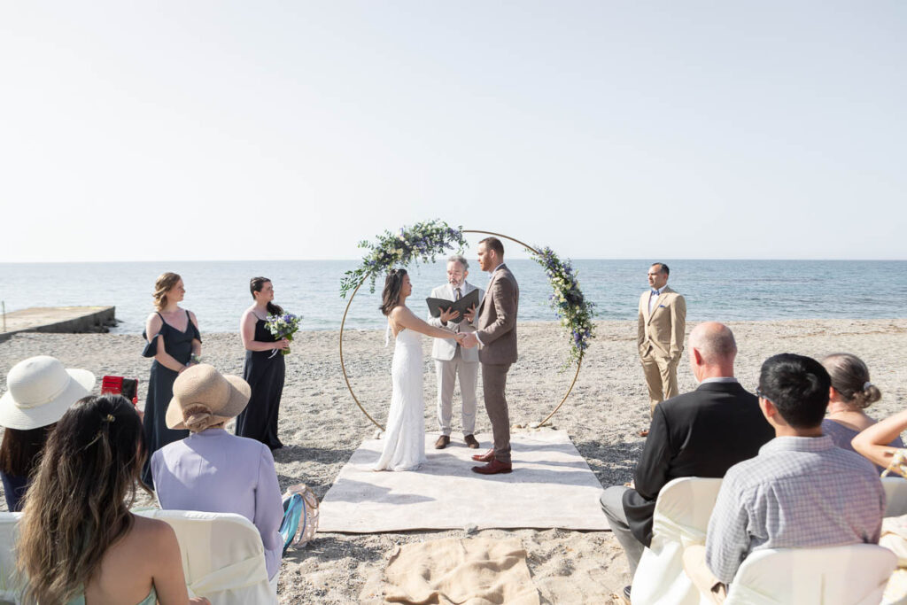 This funny couple from the US always dreamt of visiting Greece and decided to fulfill this wish with a beach wedding in Crete. Family and friends travelled to join the festivities. A ceremony on the sand, overlooking the Mediterranean Sea and a reception with endless dance and fun for everyone to remember. Photo credits: Tonia Kalliani