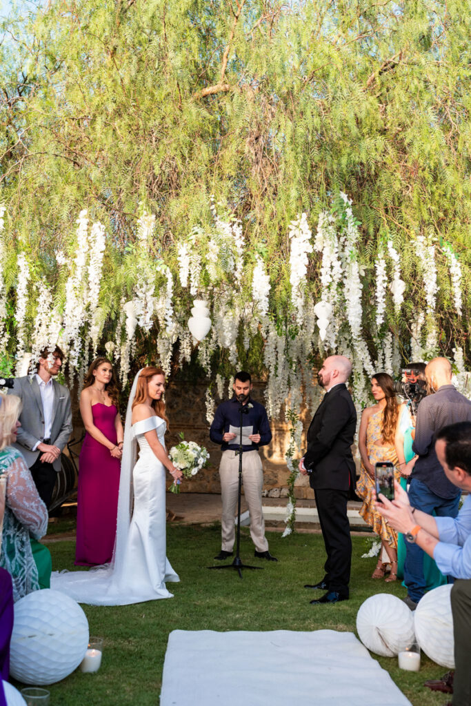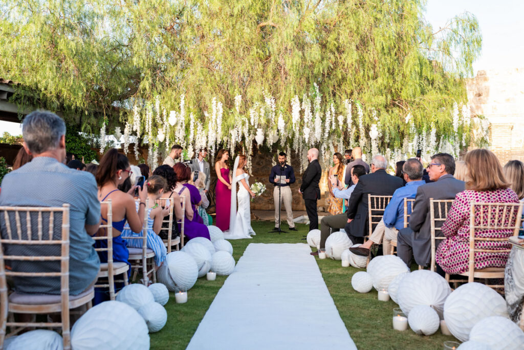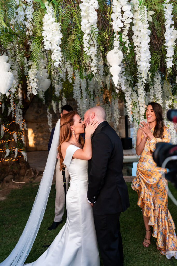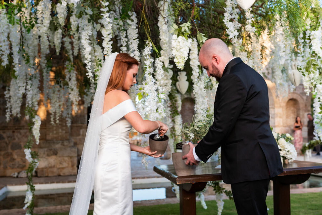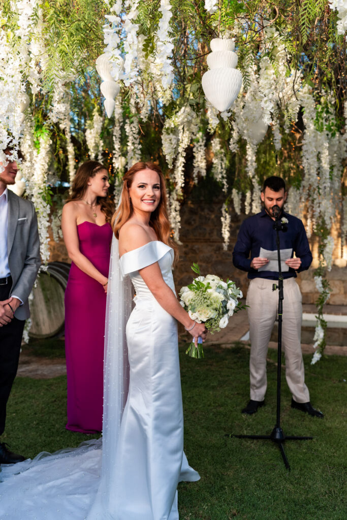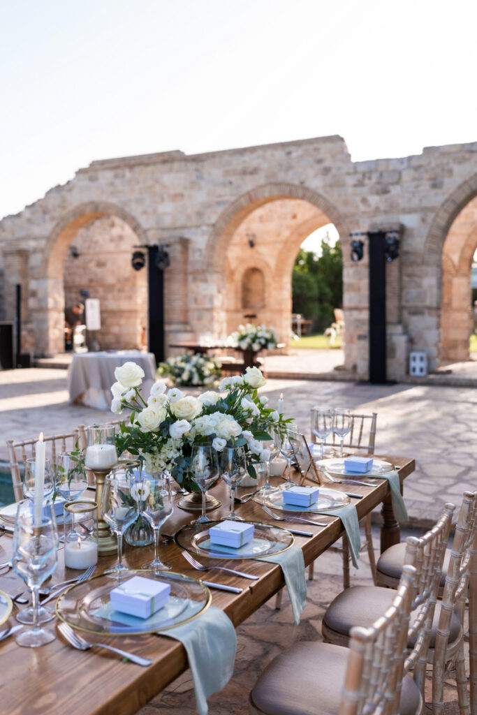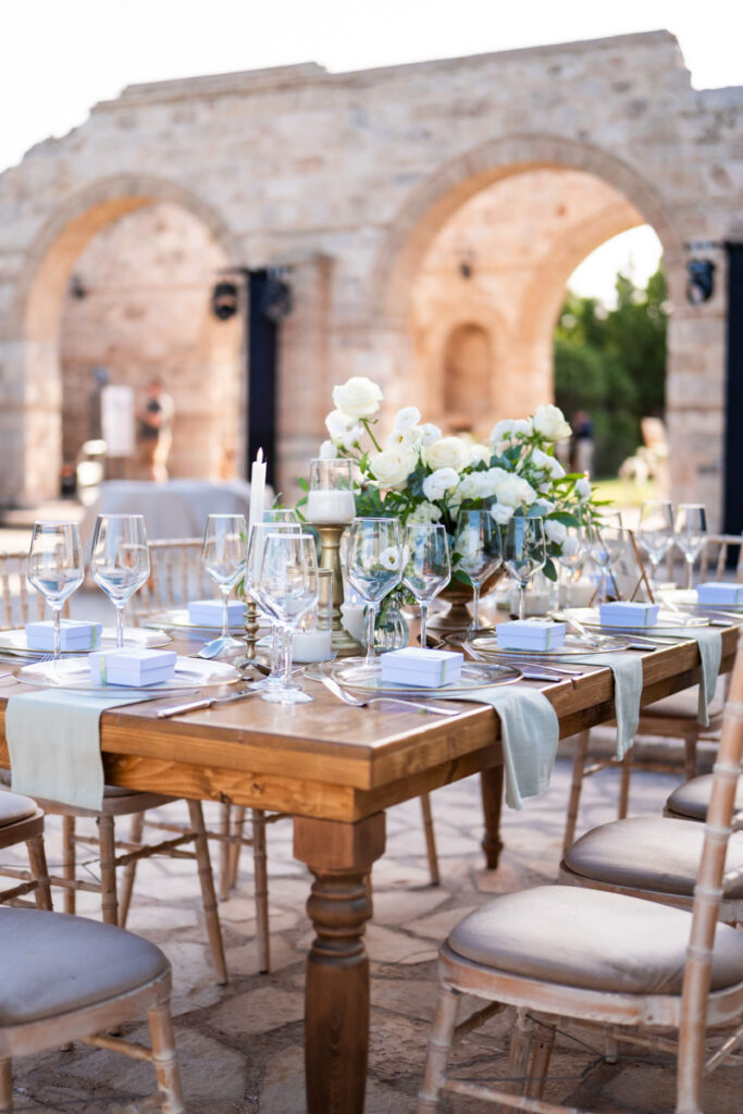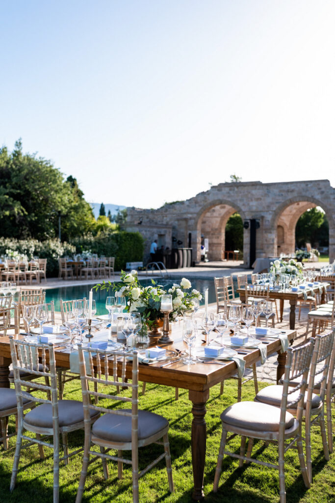Aggeliki & Giannis’ elegant vineyard wedding in Athens was meticulously planned and coordinated to create a seamless, luxurious experience. Full-service wedding planning ensured every detail—from design and styling to execution—was carefully crafted for a timeless and unforgettable celebration. Ideal for couples seeking a refined destination wedding in Greece. Photo Credits: Photo Astro