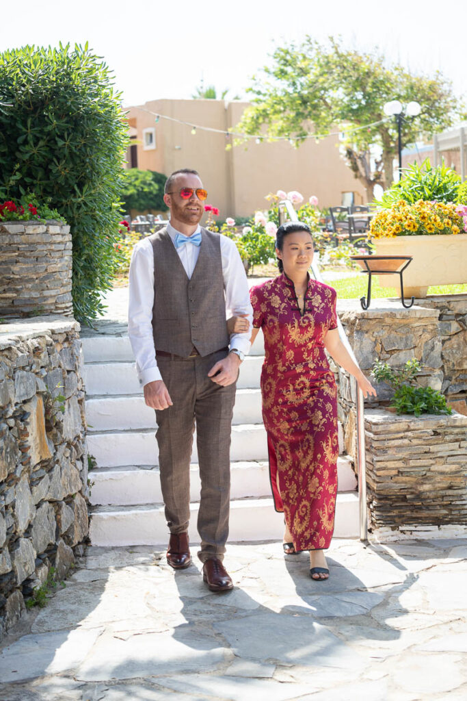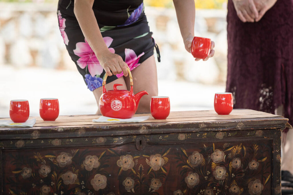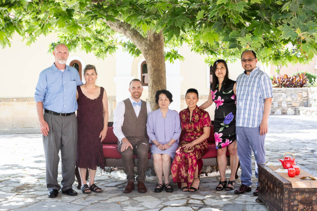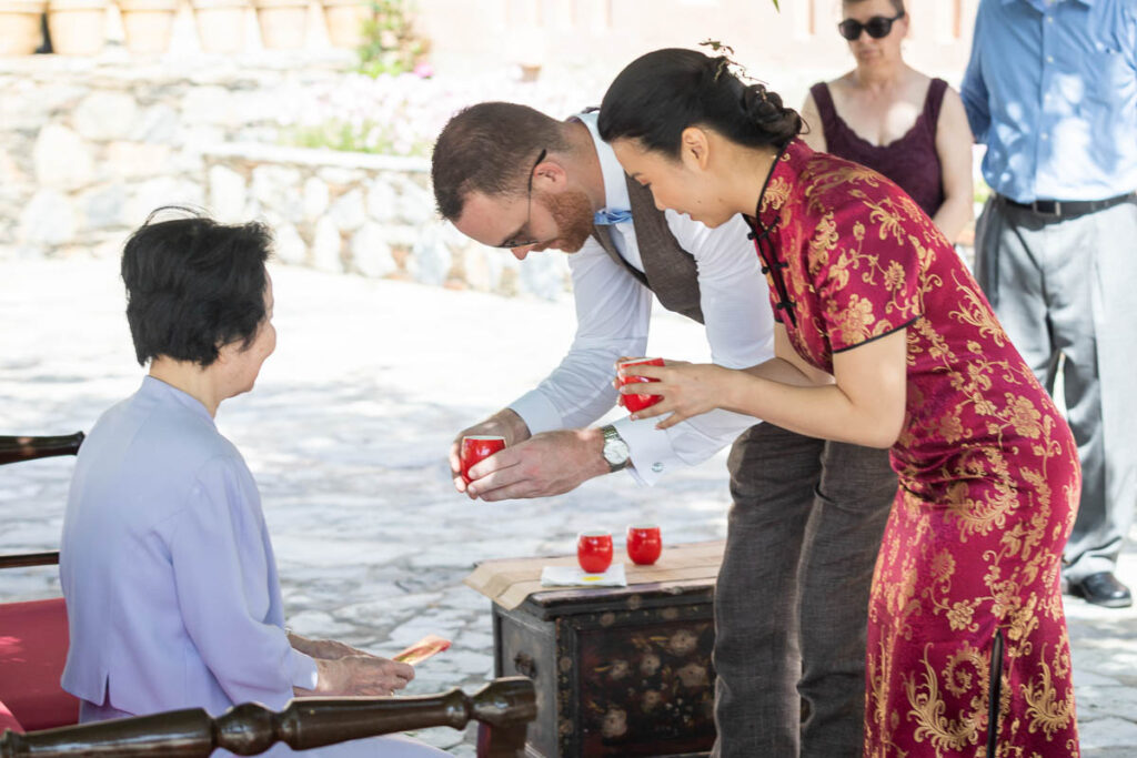 Κάτω από έναν παλιό πλάτανο στο Ρέθυμνο της Κρήτης πραγματοποιήσαμε την αρχεία Κινεζική παράδοση της τελετής του τσαγιού. Τιμήσαμε έτσι τον γάμο του αγαπημένου ζευγαριού και τις πολιτισμικές ρίζες της νύφης , προσφέροντας τσάι στους πρεσβύτερους και λαμβάνοντας από αυτούς συμβουλές, ευχές και δώρα.