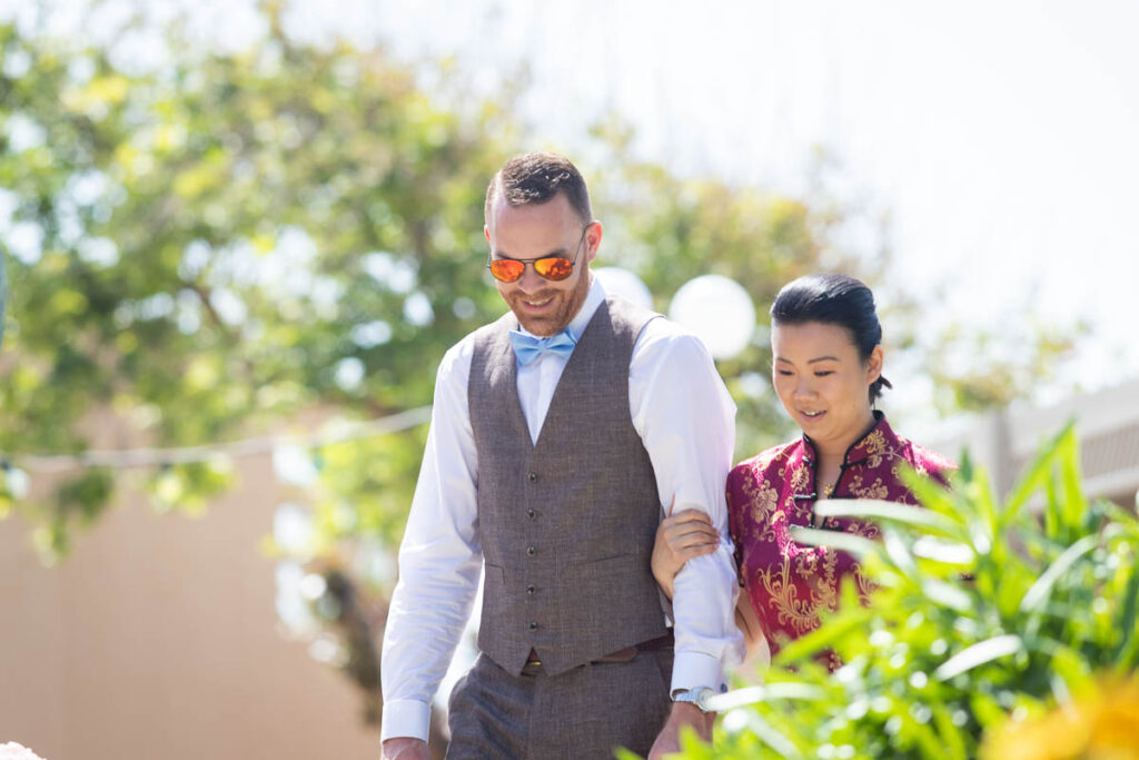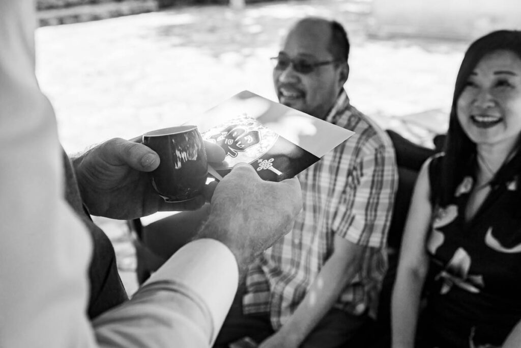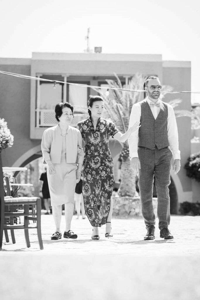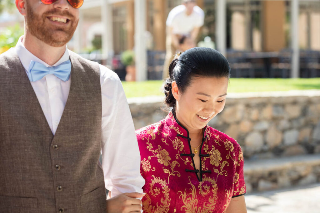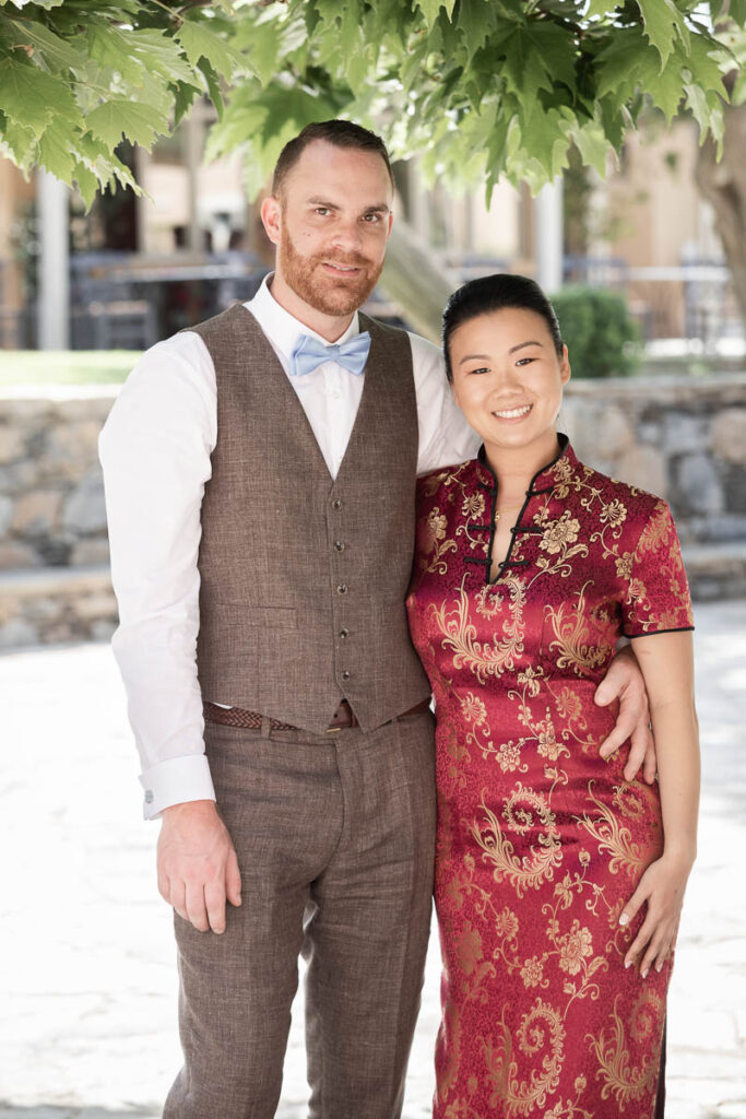 Κάτω από έναν παλιό πλάτανο στο Ρέθυμνο της Κρήτης πραγματοποιήσαμε την αρχεία Κινεζική παράδοση της τελετής του τσαγιού. Τιμήσαμε έτσι τον γάμο του αγαπημένου ζευγαριού και τις πολιτισμικές ρίζες της νύφης , προσφέροντας τσάι στους πρεσβύτερους και λαμβάνοντας από αυτούς συμβουλές, ευχές και δώρα.