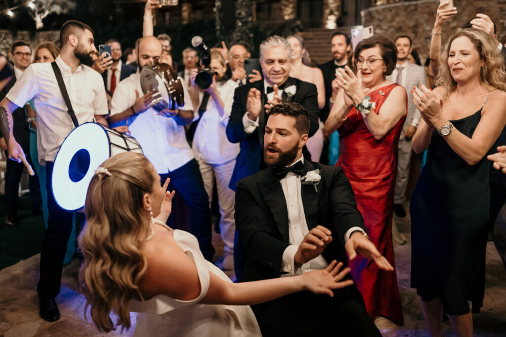 The impressive zeffe (zaffe) entrance of the couples , followed by drums and instruments is an important moment and we love staging this part of the Arabic culture to make feel all guests and couple welcome and “at home” Cutting the cake with a sword as it is done in Iraq and of course Dabke dancing for all the guests to join and celebrate concluded this unique cultural wedding celebration.