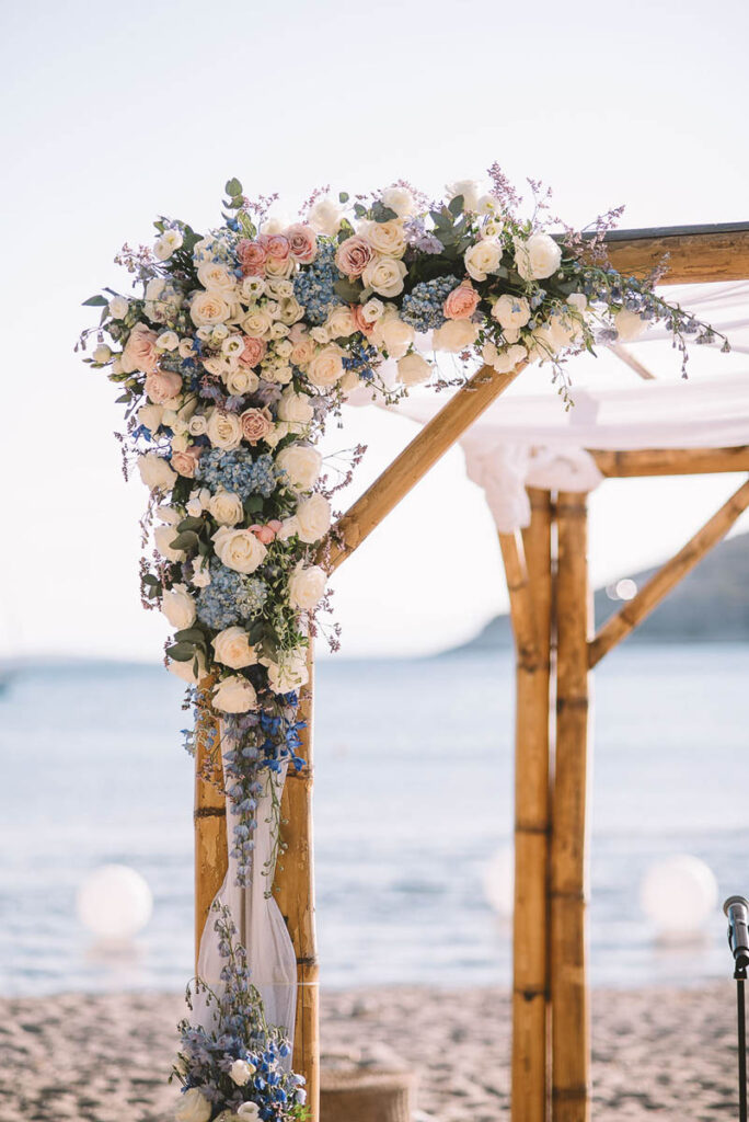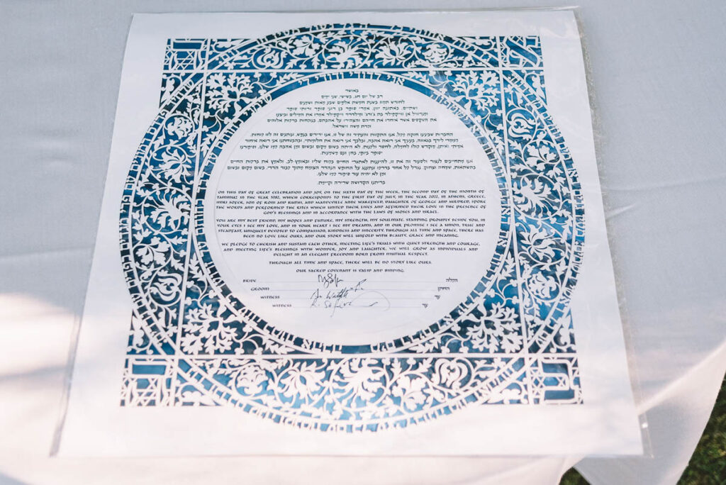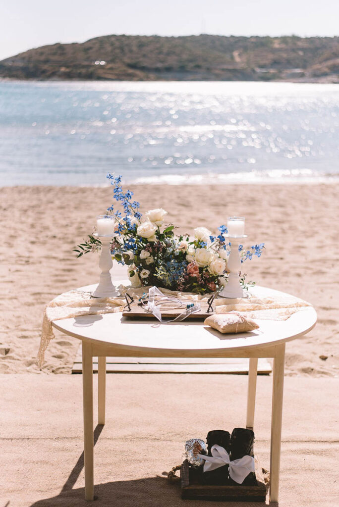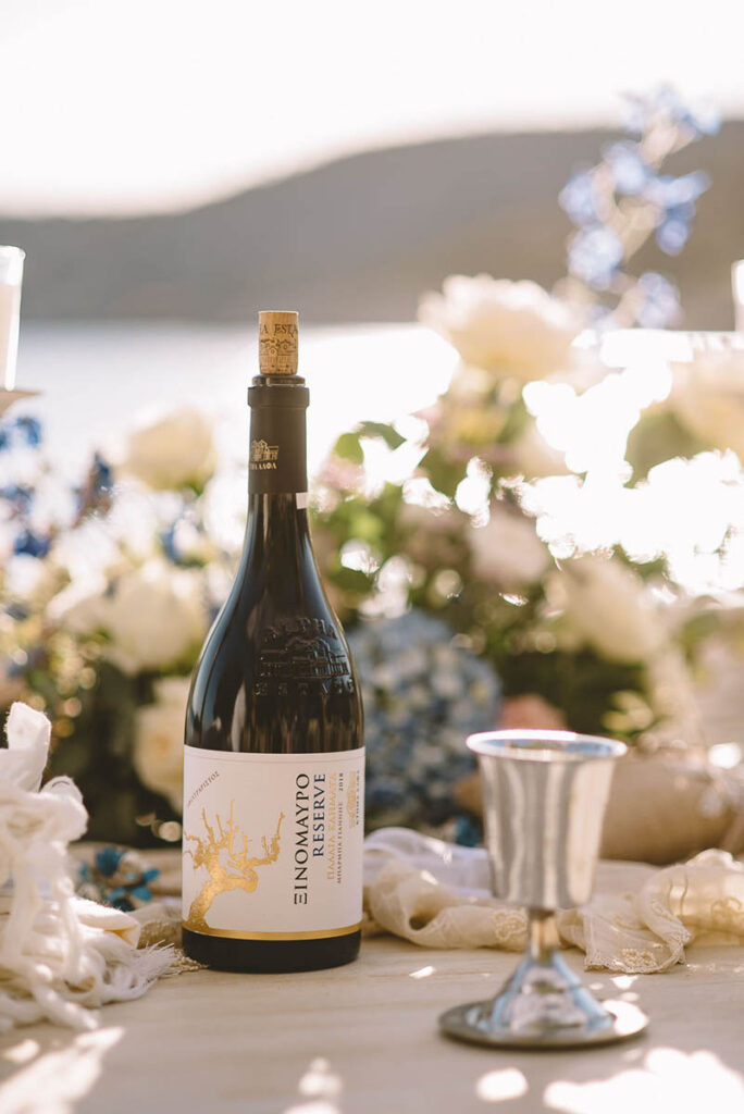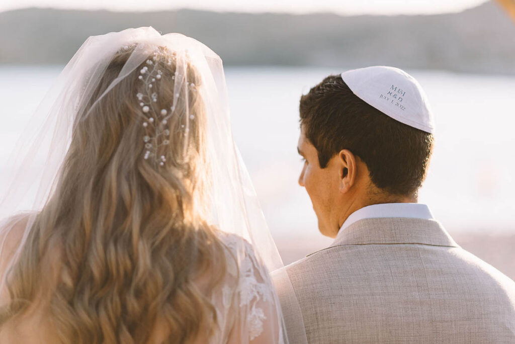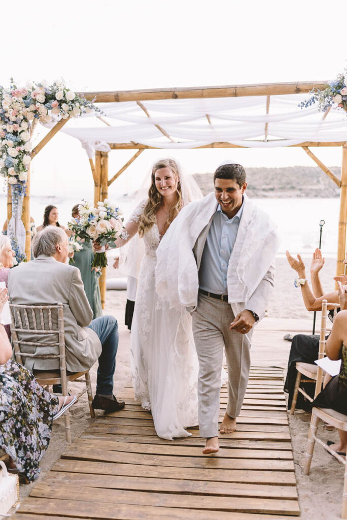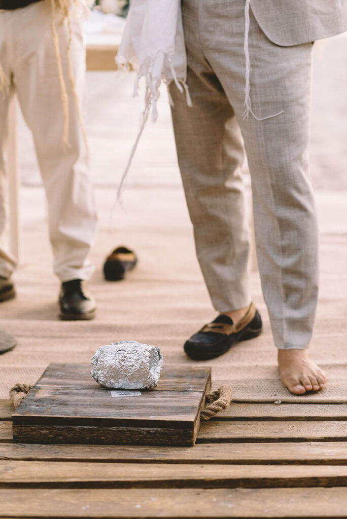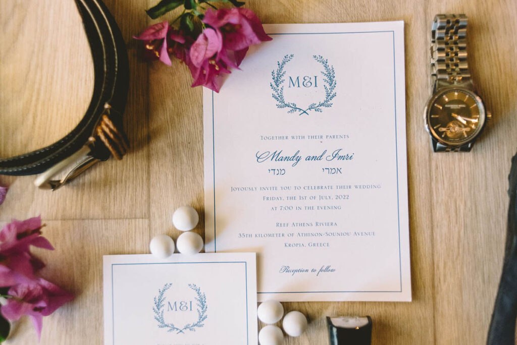 Jewish wedding traditions at a multiethnic and multireligious wedding celebration at the Athenian Riviera, honoring the groom’s religious heritage.