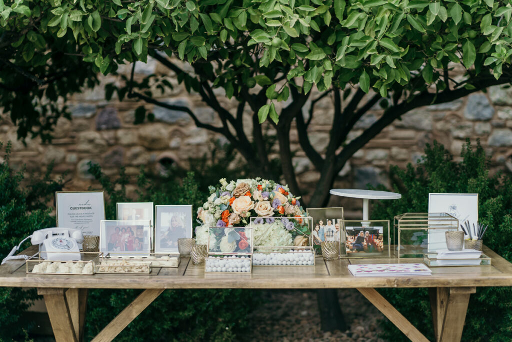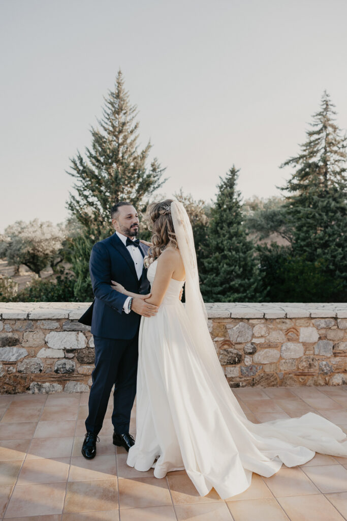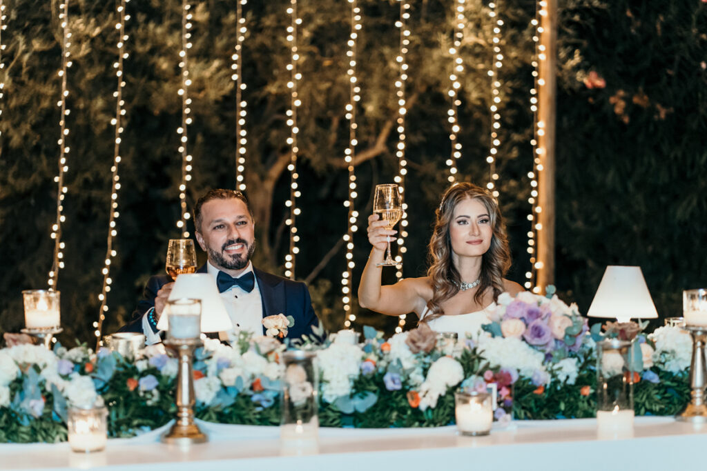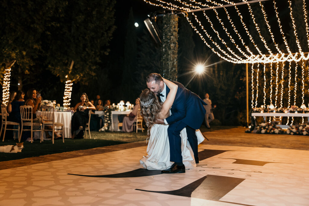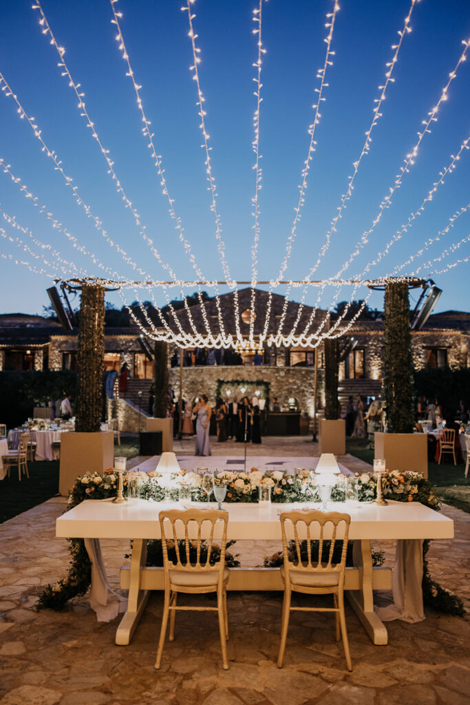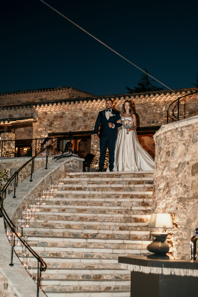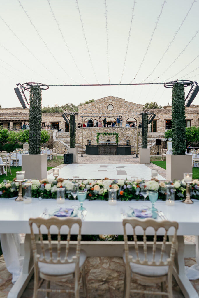 Leena and Jamil love Greece and choose the stone mansion of Pyrgos Petreza for their Greek Destination wedding. Many custom designed details and romantic colors on the florals and decorations created a light and elegant feeling for this classy and chic wedding reception, filled with dance and joy! Photo Credits: Irina Spyrou