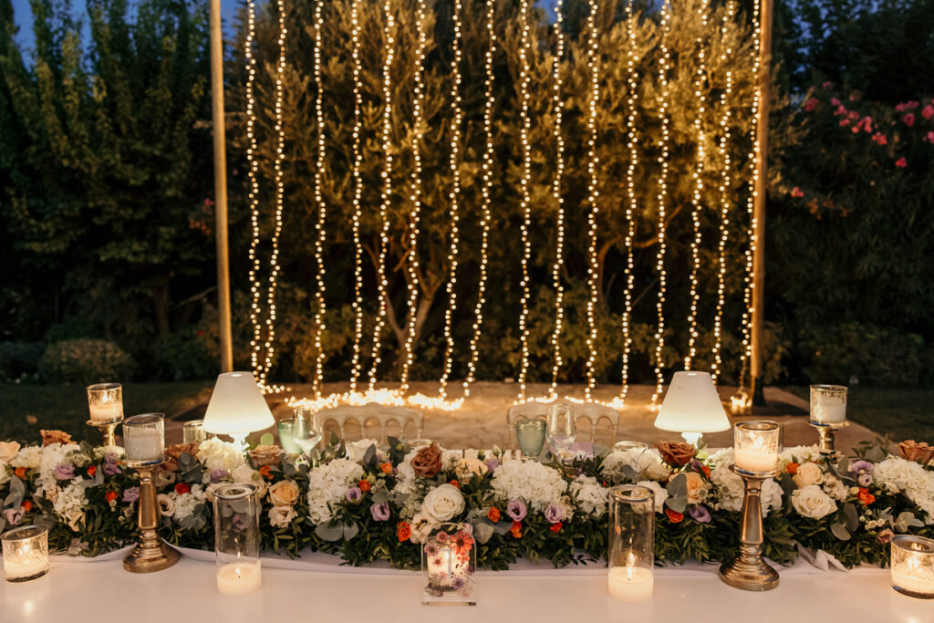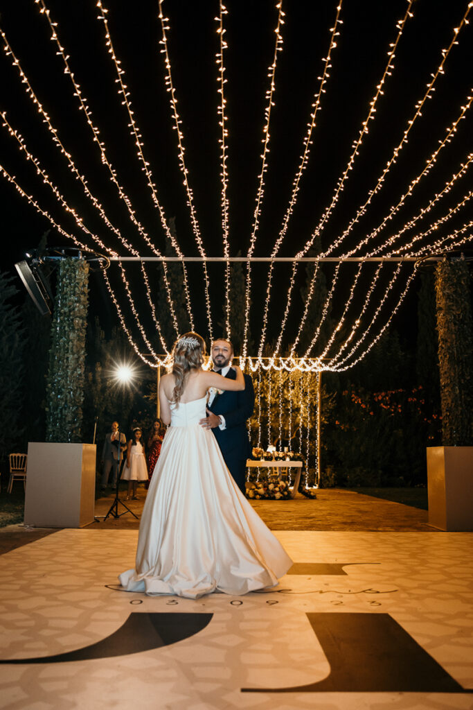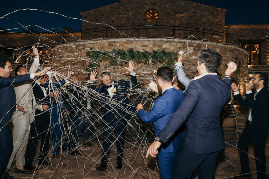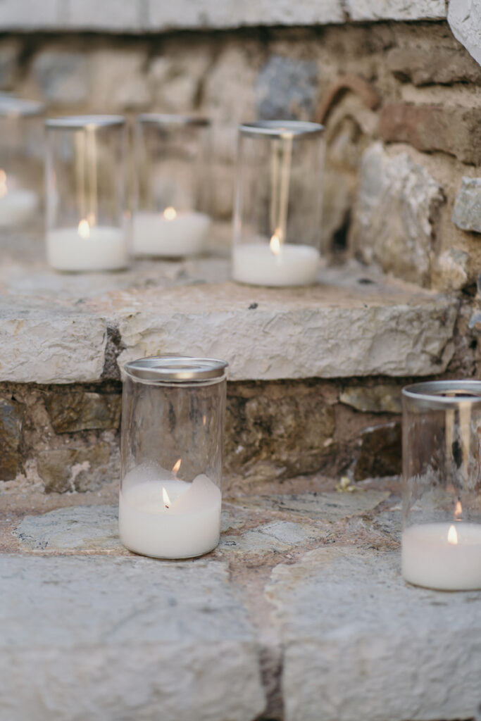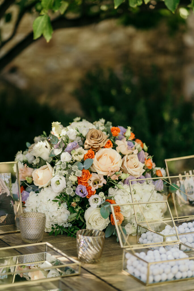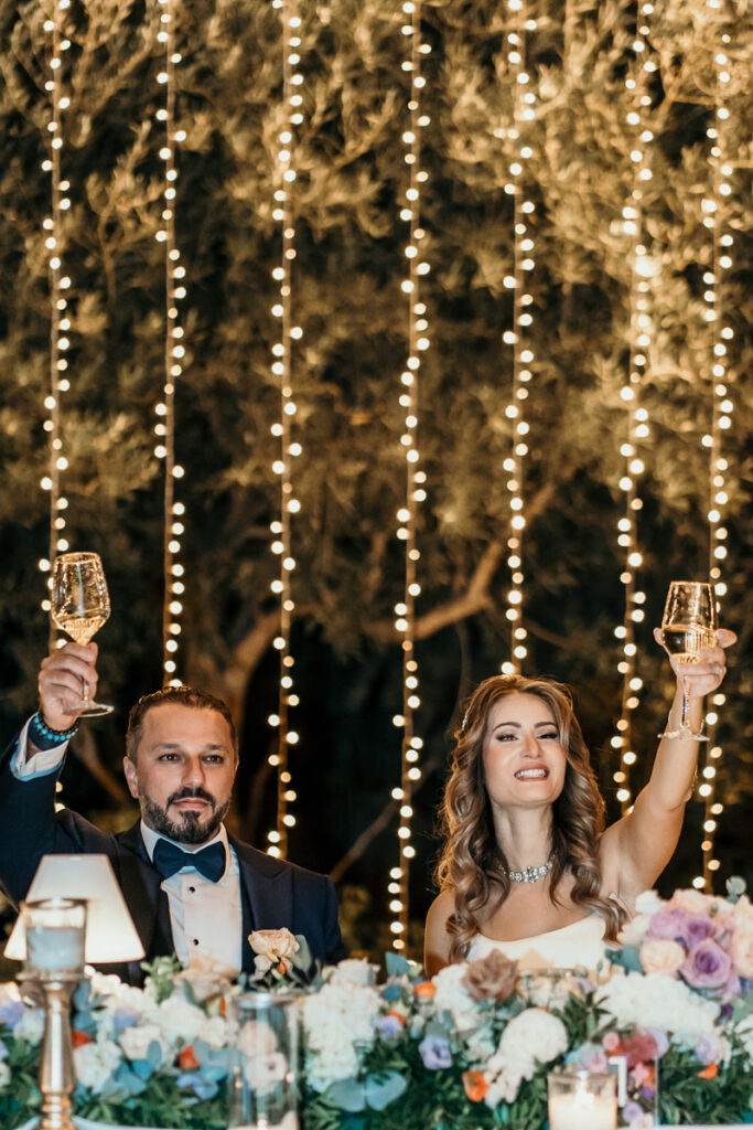 Leena and Jamil love Greece and choose the stone mansion of Pyrgos Petreza for their Greek Destination wedding. Many custom designed details and romantic colors on the florals and decorations created a light and elegant feeling for this classy and chic wedding reception, filled with dance and joy! Photo Credits: Irina Spyrou