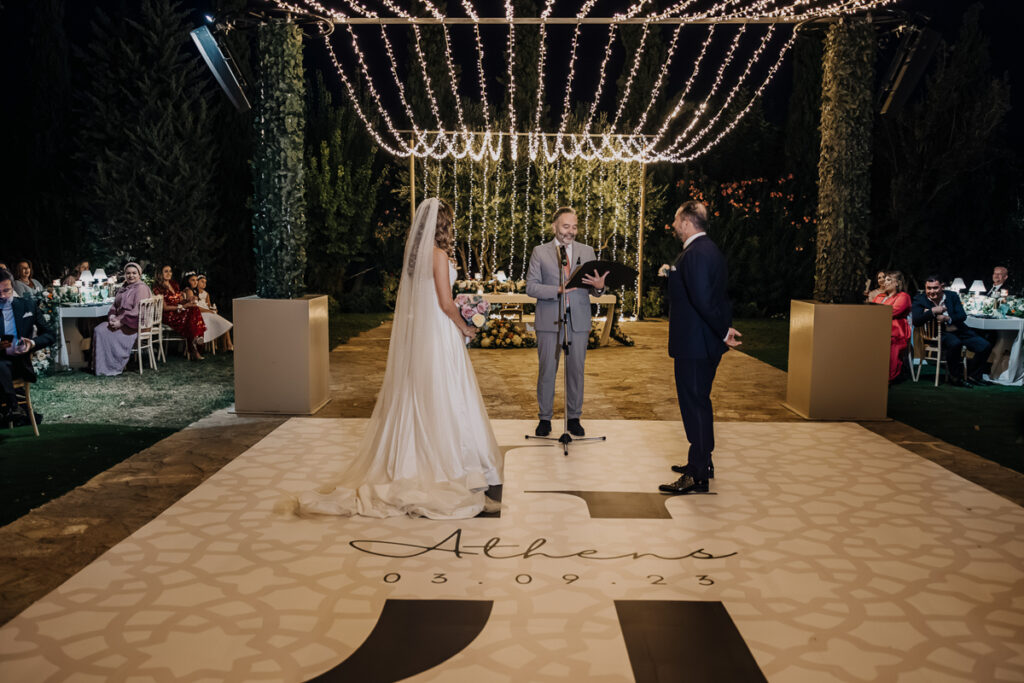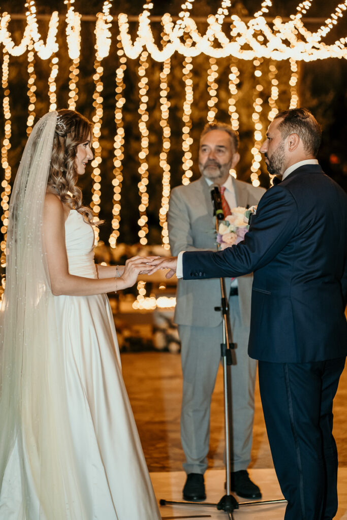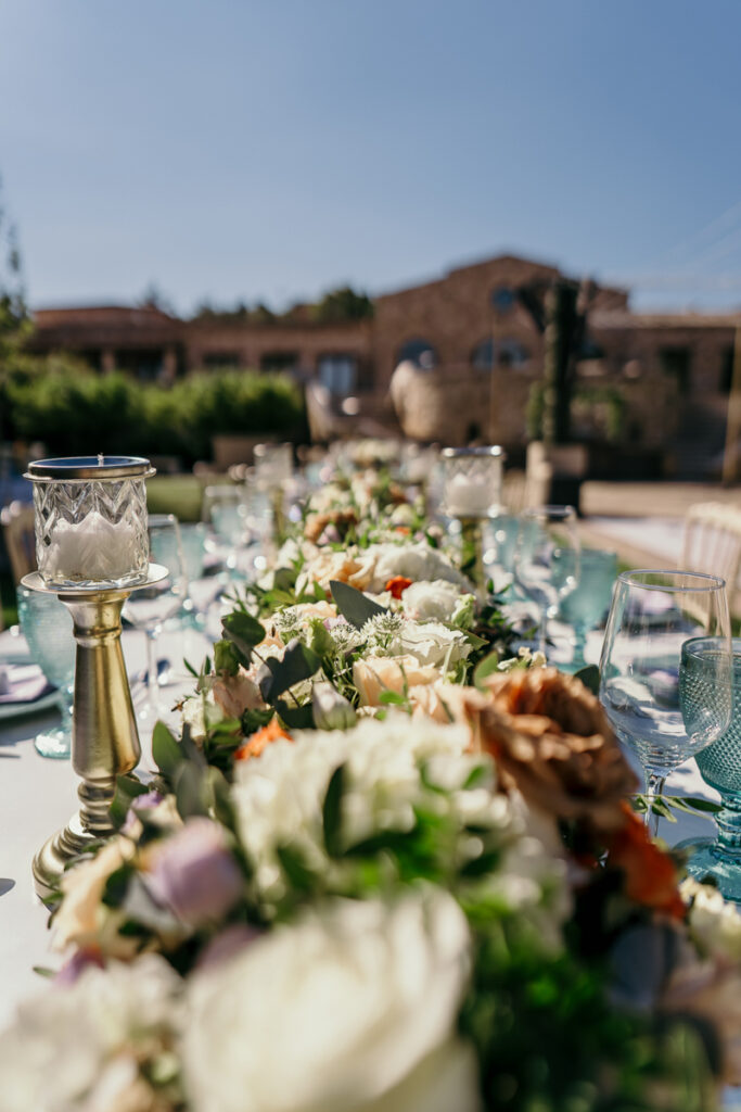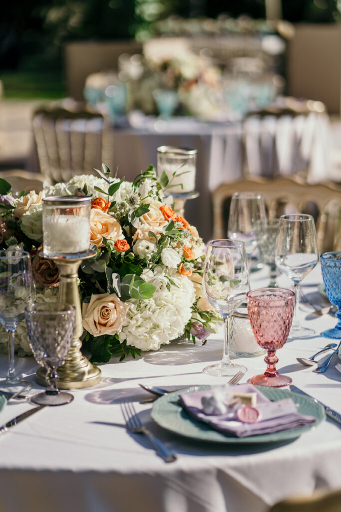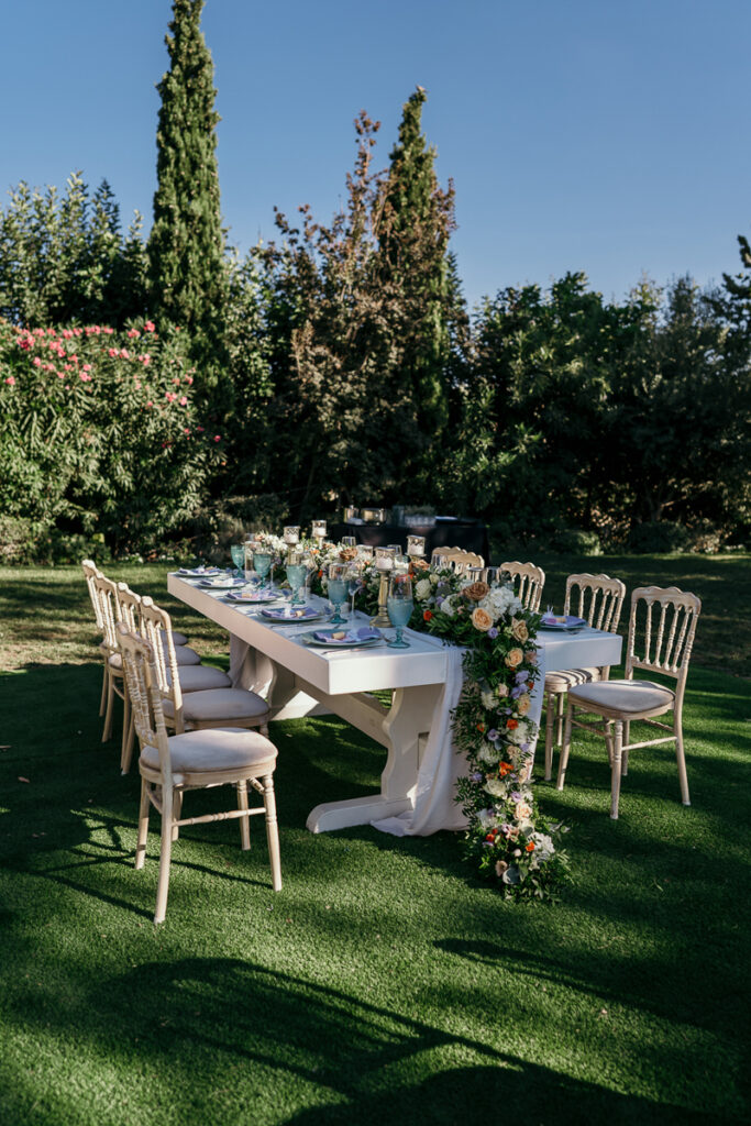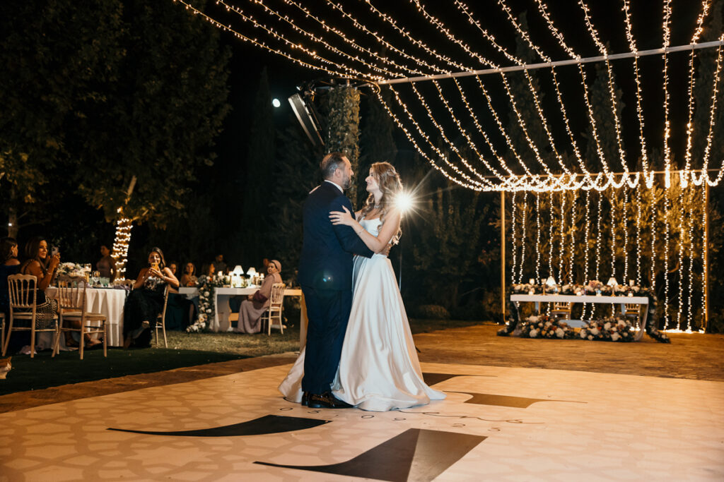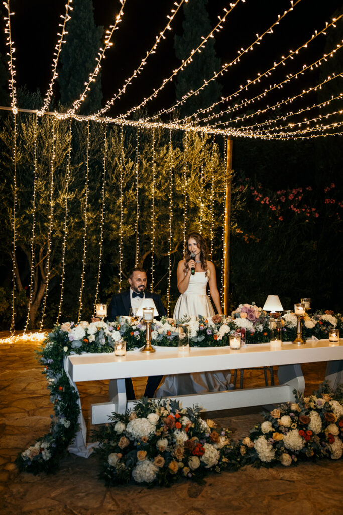 Leena and Jamil love Greece and choose the stone mansion of Pyrgos Petreza for their Greek Destination wedding. Many custom designed details and romantic colors on the florals and decorations created a light and elegant feeling for this classy and chic wedding reception, filled with dance and joy! Photo Credits: Irina Spyrou