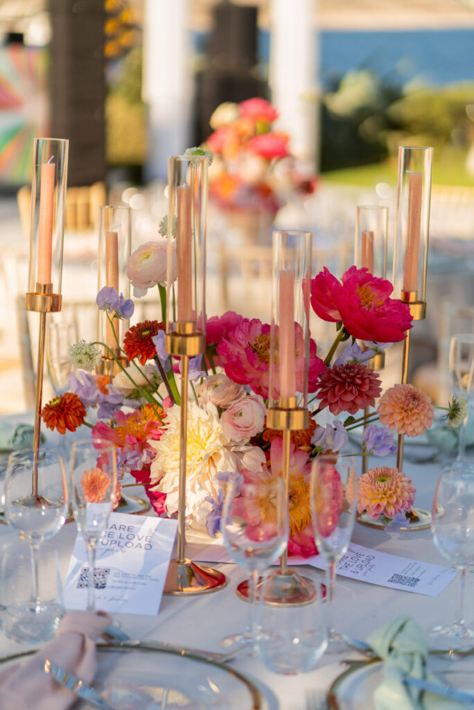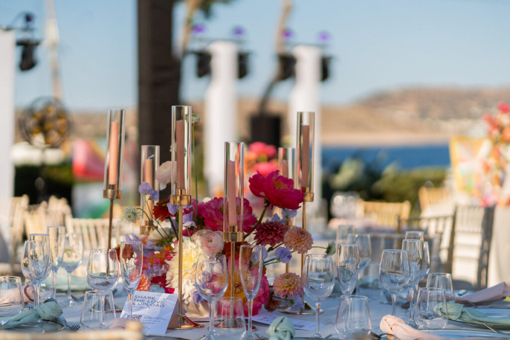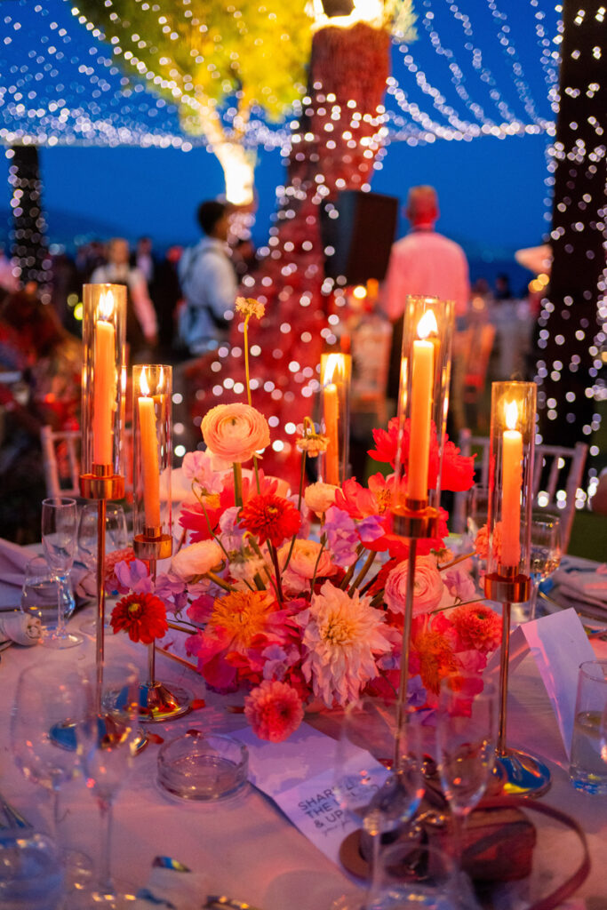 Leila and Hesham gathered all their beloved ones from Dubai, Egypt, Lebanon, UK and US to host a wedding reception to remember at Island Art and Taste – Residence. Lush flower garlands at the entrance, hundreds of candles everywhere and opulent floral arrangements on the tables and on the lounge areas we created especially for this wedding set the scene. The party until dawn was an affair to remember! Photo Credits: Everlasting Tales